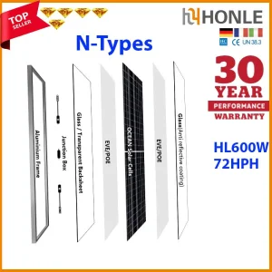 Honle Solar 2026 Topcon PV Module Solar Panel Solar Photovoltaic Panels 700W 600W 425W 400W 500W 450W 550W Bifacial All Black Solar Panels